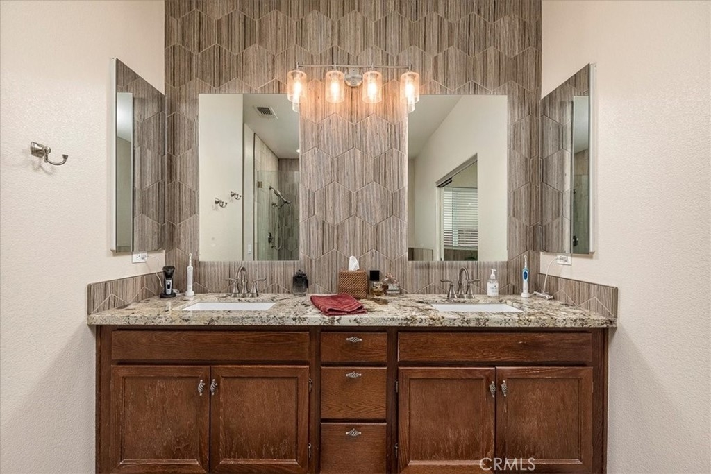 Welcome Home to your custom resort in the heart of Temecula. Your open ranch style home is located in the Highly Desirable community of Serena Hills at the end of a quite cul-de-sac. As you enter, you are greeted by the fresh and inviting foyer and tile entry hall awaiting your family decorations. The entry hall opens to the awe inspiring Heart of your home with an open kitchen and living room design, high vaulted ceiling, completed with a custom split sliding door to the pool & spa. The kitchen area is the family and entertainment spot with granite counters, matching & complimenting backsplash, wine refridgerater and stainless appliances. The oversized granite island features a large stainless basin sink, and an abundance of counter area that overlooks the living room and pool. The spacious living room is complete with dual burning fireplace for cool winter evenings or open the split sliding door for cool summer nights. Your backyard is custom designed for entertaining with a private pool & spa and outdoor kitchen. The full outdoor kitchen showcases kitchen matching granite counters with a stainless & gas piped grill, refrigerator, ice maker and completed with a rise sink. Soak in the resort lifestyle lounging poolside while the family or guests play in the pool or one of the large side yards. Your primary room is complete with high vaulted ceilings and direct access to the spa. The primary bath exudes elegance with a custom tile accented oversized shower, deep soaking tub, backlit & defogging mirrors and matching granite counters. Enjoy family dinners in the formal dining room. Your home is zoned and located close to Temecula's Distinguished schools, several community parks, and other outdoor recreational activities and shopping. An added bonus, you are minutes from Beautiful Temecula wine country. There is so much more to truly appreciate that makes this house your home.