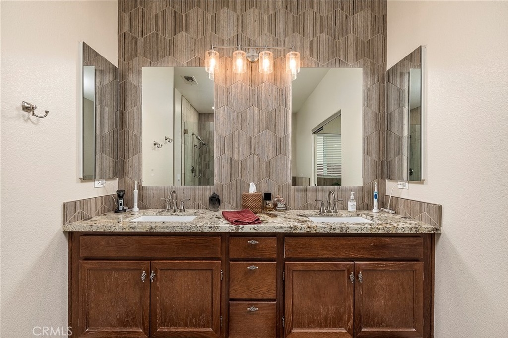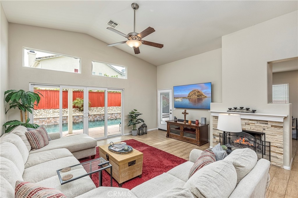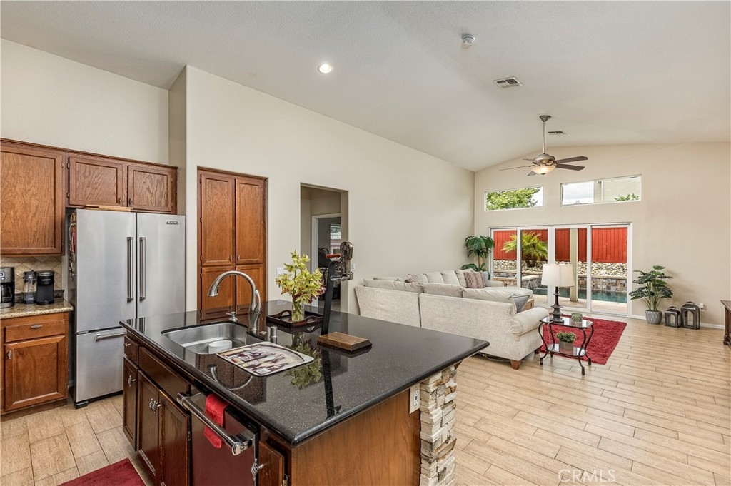 Your single story resort is located at the end of a quiet cul-de-sac in the Highly Desired community of Serena Hills. This home has been completely remodeled to custom standard. The subtitle qualities are throughout this home and blend the entire home together. From the matching granite counters in the kitchens and backsplash inlay. To the decorative stone accent on the oversized island, fireplace and outdoor kitchen. As you enter, you notice the fresh paint throughout waiting your decorative touch. The wood accent tile flooring throughout keeps this home cool year round. As the entry hall opens to the awe inspiring open kitchen and living room that is the heart of this home. The kitchen is the center piece of entertainment and culinary delight. The kitchen is complete with granite counters and oversized island, stainless appliances, deep bowl sink in the island, and topped with your own wine fridge. The spacious living room is complete with high vaulted ceiling, dual burning fireplace, and oversized wall mounted entertainment. The split slider provides an incredible pool view and to hear the soothing water flow from the spa waterfall. Even better allowing gentle breezes to cool the home. In the backyard you are greeted by the custom built outdoor kitchen with granite counters and plenty of room for serving meals, refreshments, or grill prep. The kitchen is complete with it's own fridge, ice maker, wash sink, and no more tanks with the house piped gas grill. Relax on the top deck while the kids play in the pool or spacious side yards. Enjoy your evenings in the spa with the decorative pool and yard lighting. Your primary room has high vaulted ceilings and private slider with access to the spa and lounging area. Your bath is completed with an oversized shower, soaking tub, accent walls, matching counters and backlit LED mirrors. The guest rooms are spacious for larger beds and furniture. The guest bath has a custom tile & stone shower with glass barn door for a very modern look. For the children, Distinguished schools and community parks that host events years round are at the end of the street. Close by are fabulous restaurants, shopping, several biking and hiking trails, golf courses and more. Lastly, you are minutes from Temecula's Famed Wine County. If you are look to start or raising a family or downsizing, this home has everything you'd want without having to do it yourself and no detail is overlooked. Start living the Temecula resort lifestyle today.